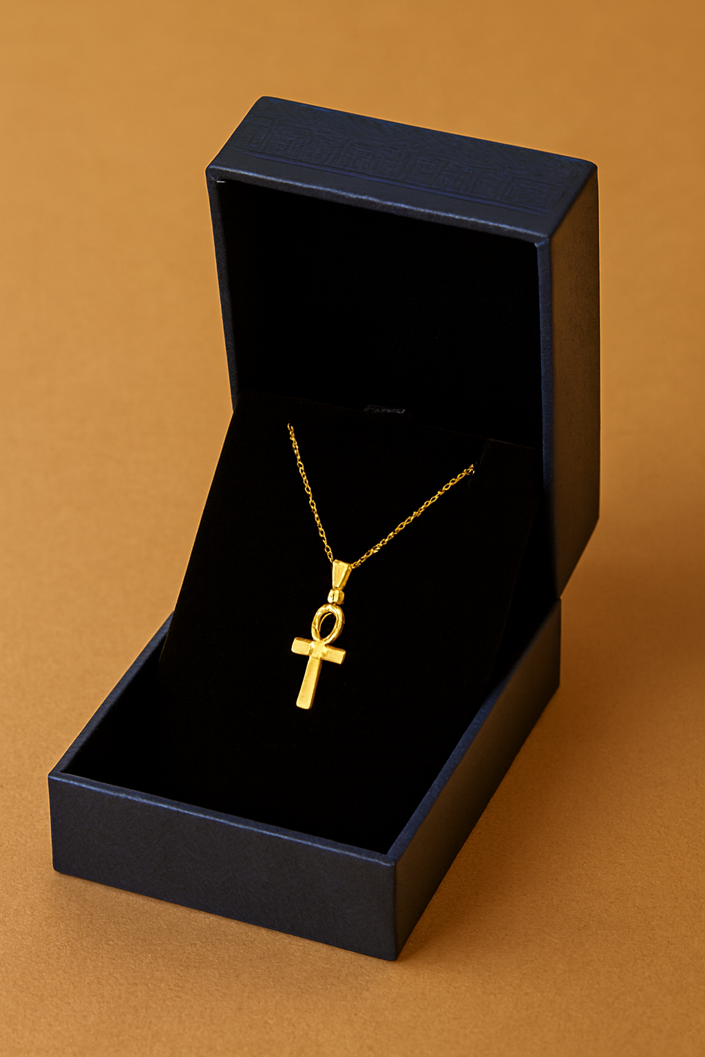 A refined gold necklace featuring the iconic Ankh pendant — an ancient Egyptian symbol of life and vitality. This piece blends cultural heritage with modern elegance, making it a meaningful accessory for everyday wear or a powerful gift.