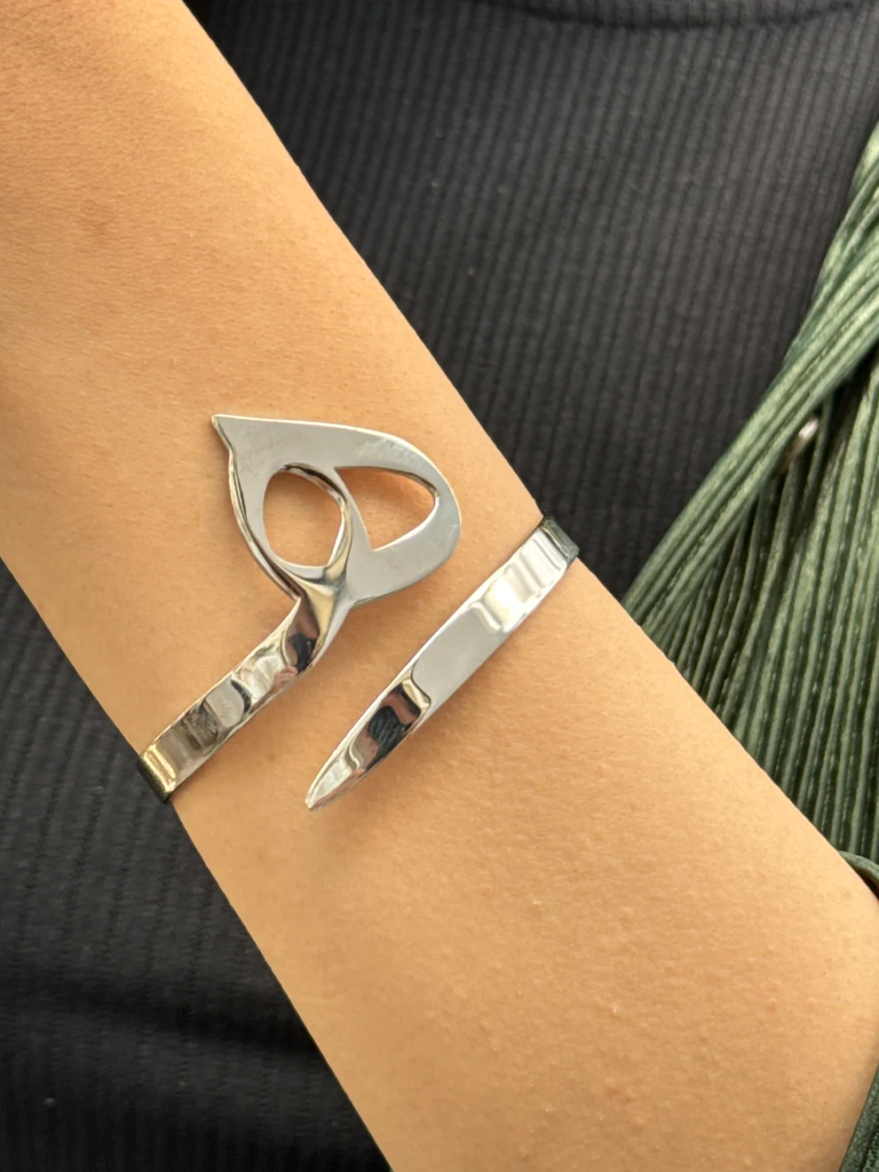 A striking bracelet inspired by the fluid motion of flame, featuring a sculptural centerpiece that blends modern artistry with timeless sophistication. Whether in radiant gold or sleek silver, this piece adds a bold touch to any outfit and speaks to those who appreciate refined design.